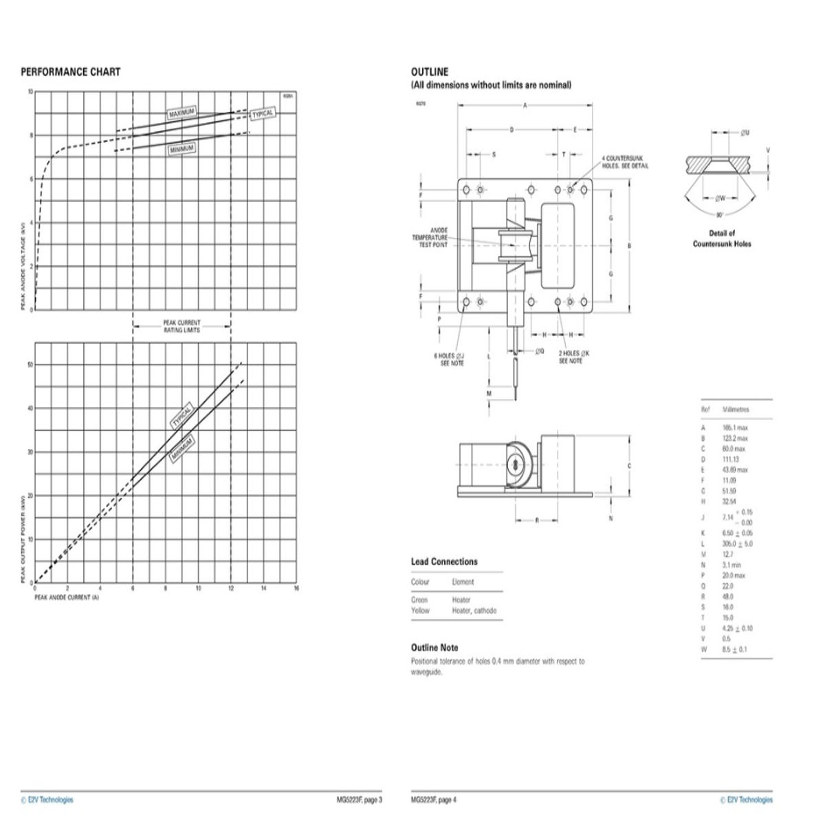 The EEV MG5223F is a high-performance, fixed-frequency S-band magnetron designed for marine radar systems. Operating within the frequency range of 3040–3060 MHz, it delivers a peak output power of 30 kW, ensuring reliable radar performance in demanding maritime environments.