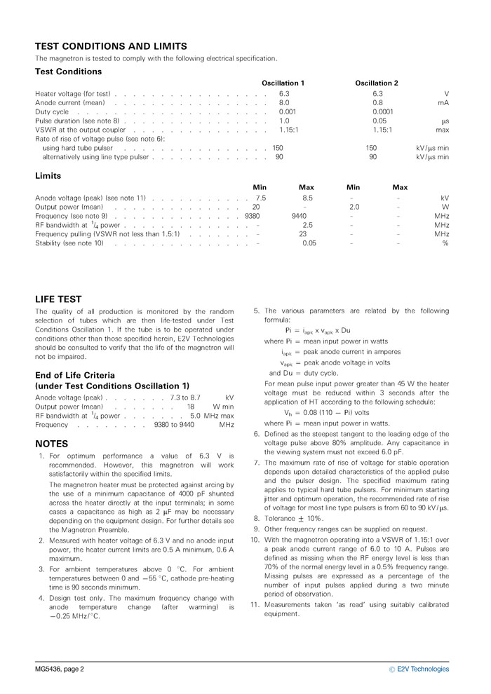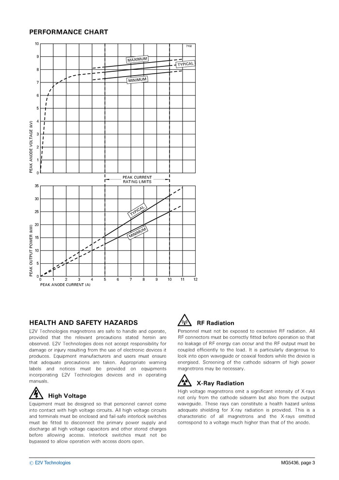 The EEV MG5436 is a high-performance, fixed-frequency X-Band magnetron designed for marine radar systems. Operating within the frequency range of 9380–9440 MHz, it delivers a peak output power of 25 kW, ensuring reliable radar performance in demanding maritime environments.