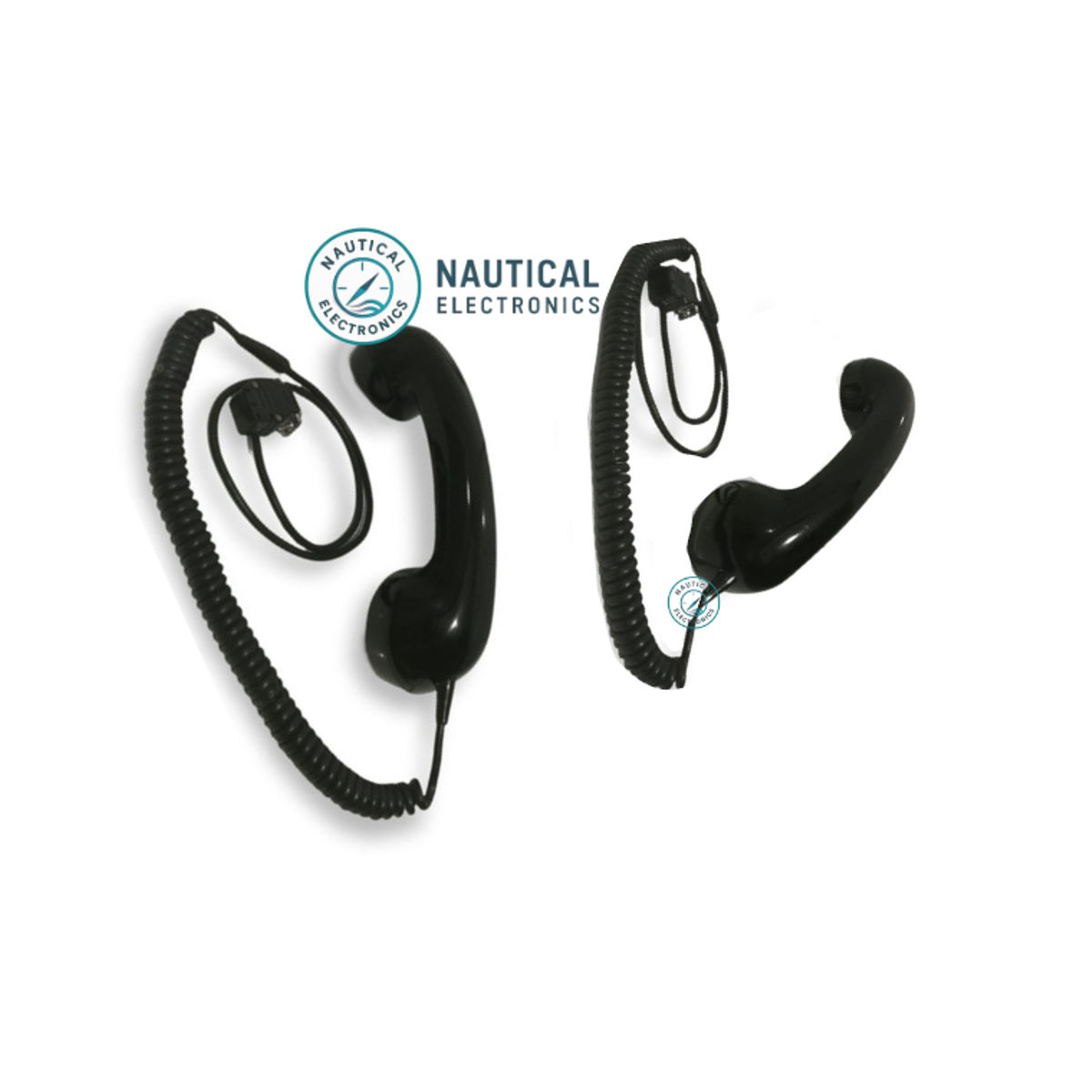 Design: Features a coiled cable and a robust, ergonomic handset suitable for marine environments.